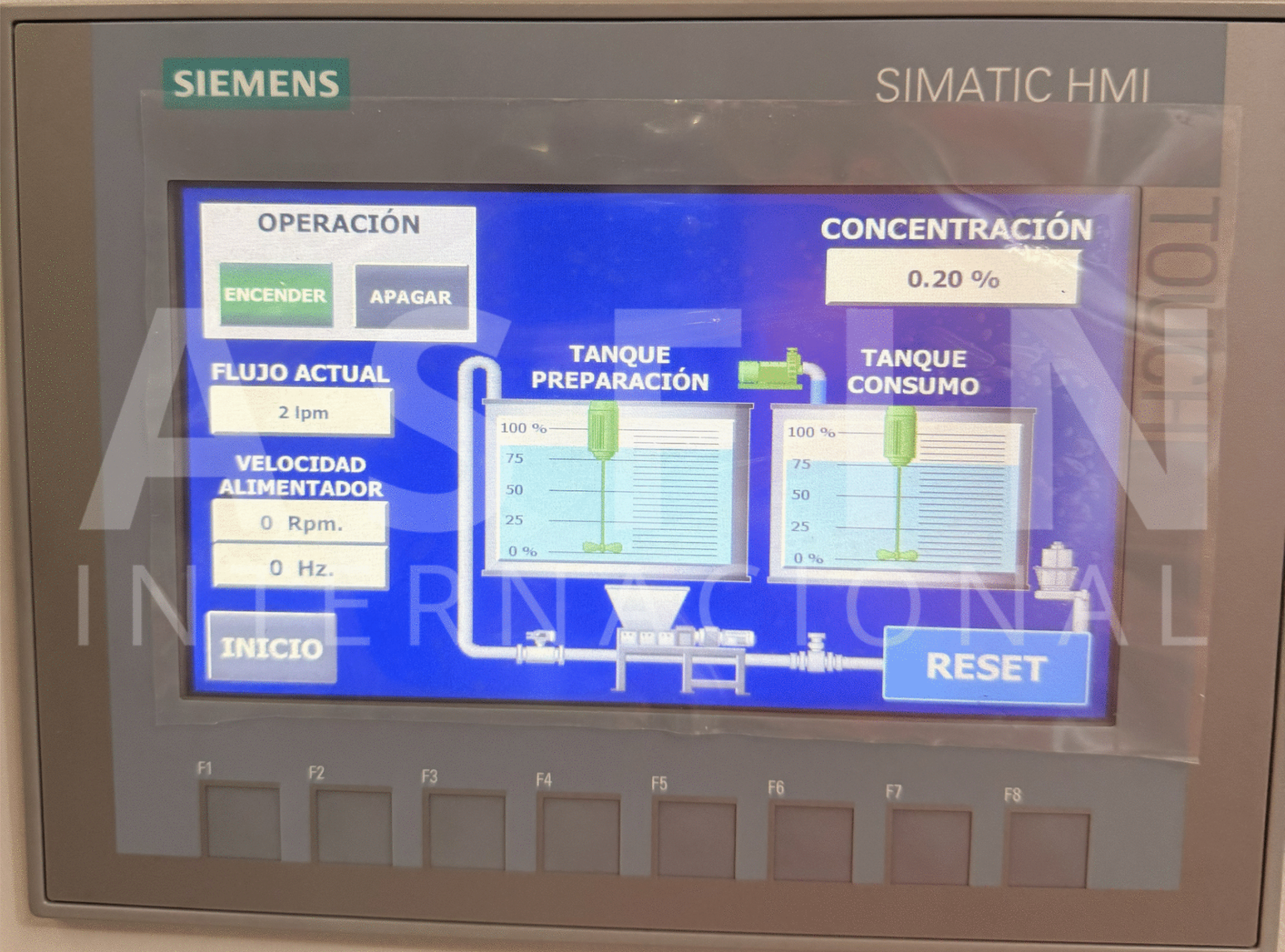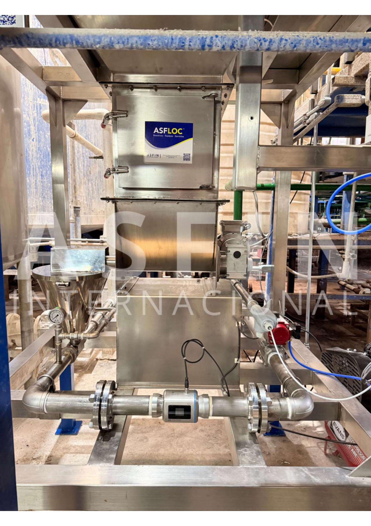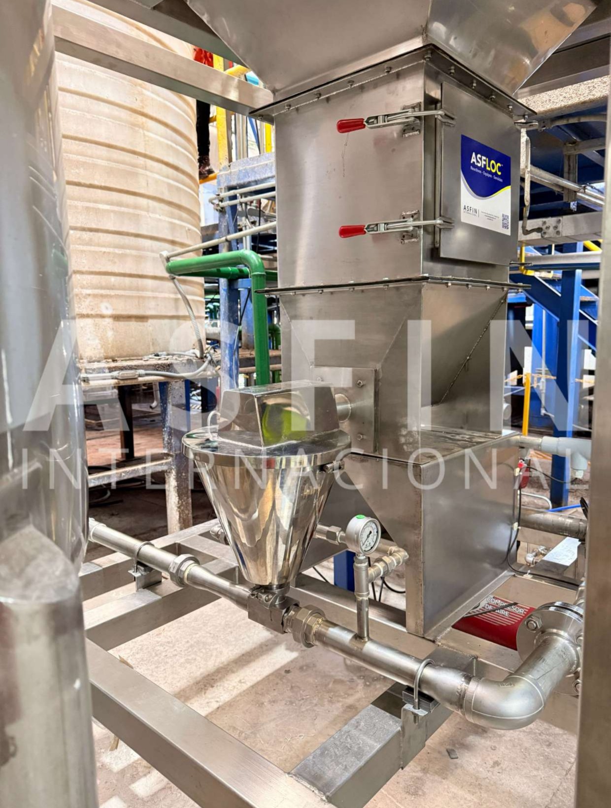 Se fabricó una Unidad Automática de Humectación de Polímero marca ASFLOC modelo UHF750/300/304/460 la cual quedó totalmente enlazada con los demás equipos. Su PLC permite monitorear en tiempo real el llenado y el vaciado de los tanques, así como la operación de la bomba de trasvase.