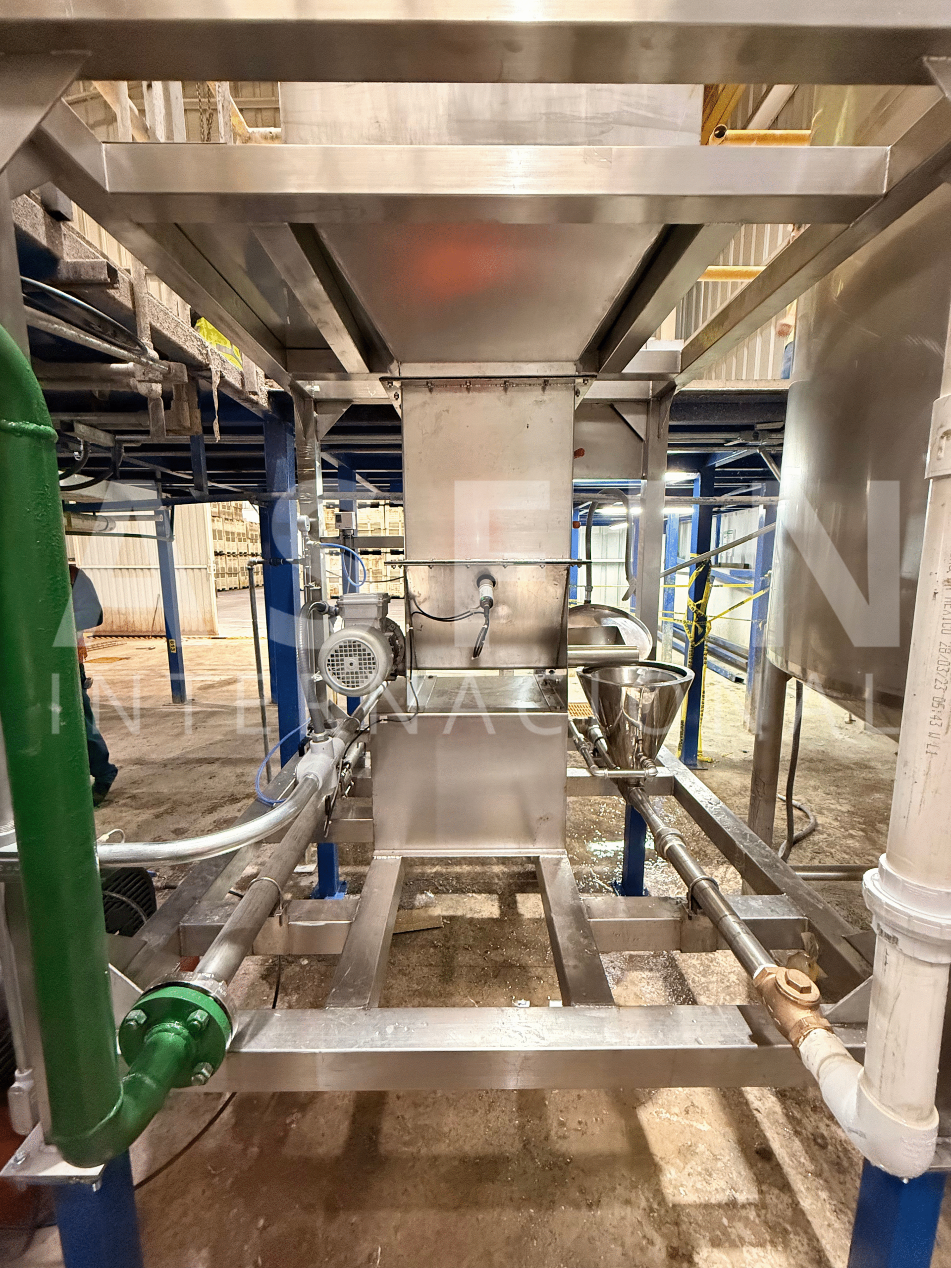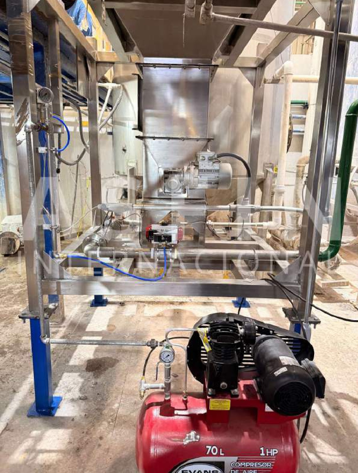 Se diseñó una unidad dual de humectación que pudiera trabajar con sacos de 25 kilos y super sacos de 750 kilos y 1000 kilos, la cual integramos mediante una bomba de trasvase presente y dos niveles ultrasónicos, proveídos por nuestra empresa, a los tanques de preparación – maduración con capacidad de 20 m3 y de dosificación con capacidad de 10 m3, existentes.